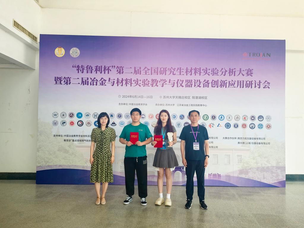 6月14日-16日,由中国冶金教育学会主办,苏州大学和江苏省冶金工程实践教育中心承办的第二届全国研究生材料实验分析大赛在苏州大学成功举办。来自全国57所高校和研究所共计100余名研究生参赛,围绕金相制样、实验分析两个赛项展开激烈角逐,我校首次参与此次竞赛并取得优异成绩。本次大赛只设团体奖,我校材料与冶金学院2022级研究生张露云、2023级研究生唐政涛获得团体一等奖。