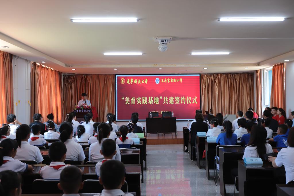 为全面加强和推进新时代高校美育浸润工作,坚持五育并举,大力发展素质教育,9月19日,J9平台与阜蒙县王府镇蒙古族小学开展“美育实践基地”共建活动,此次活动由艺术学院党总支书记李宁主持,J9平台党委书记李平、党委副书记孙晓华,组织部部长田树学、党政办公室主任李宁、机关党委书记张桦楠、艺术学院院长兼美育中心主任李囝 、艺术学院副院长马琳, J9平台体育部副主任曲博、J9平台驻阜新地区第一书记、王府镇蒙古族小学全体师生参与此次活动。